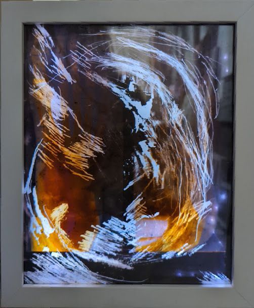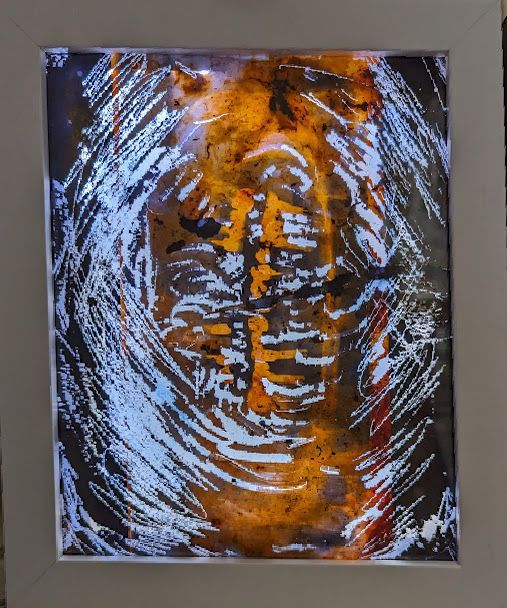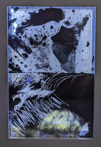 Le corps, reconstitué par l 'empreinte d’un buste de dos, s’imprime par l’encre sur de vieux rebuts de tissus déchirés. Puis en se dissolvant, ce corps inscrit l’ombre de ce qu’il fut, la trace éphemere de son passage et de son anéantissement et hésitant sur le seuil à franchir laisse le spectateur décider du choix de sa destinée.
