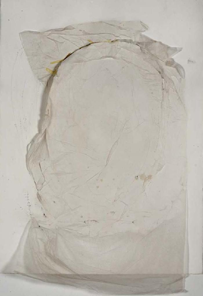 From the flatness of the line or the curve launched without permission to repent, she manages with her collage of rice paper, bis on white, plated or crumpled, in dialogue with the strong or light, round or vertical writing, to reconnect with the third dimension that accompanied her beginnings as a sculptor.