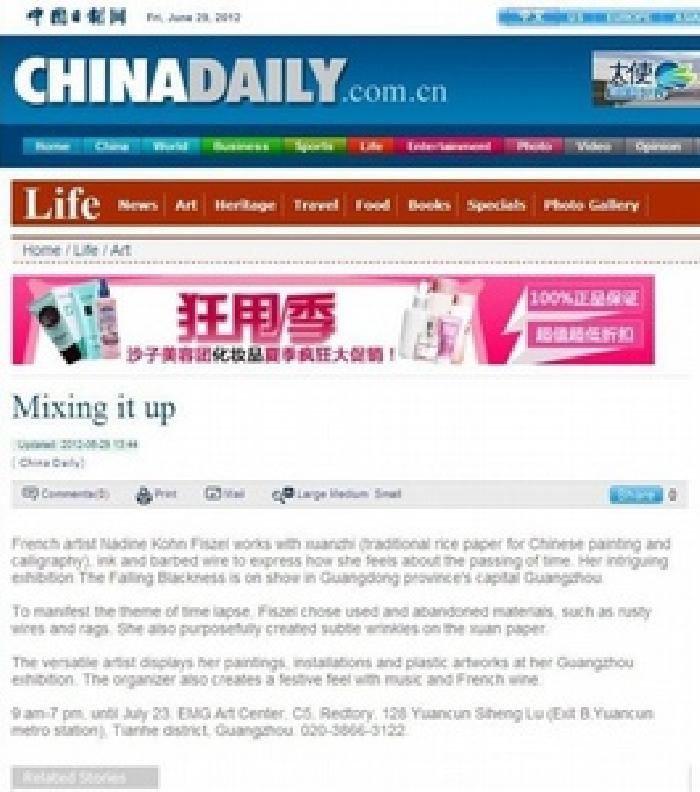 Press article concerning the two major exhibitions in China, July 28, 2012. More than 50 media outlets reported on these 2 exhibitions, including newspapers, magazines, and online articles.