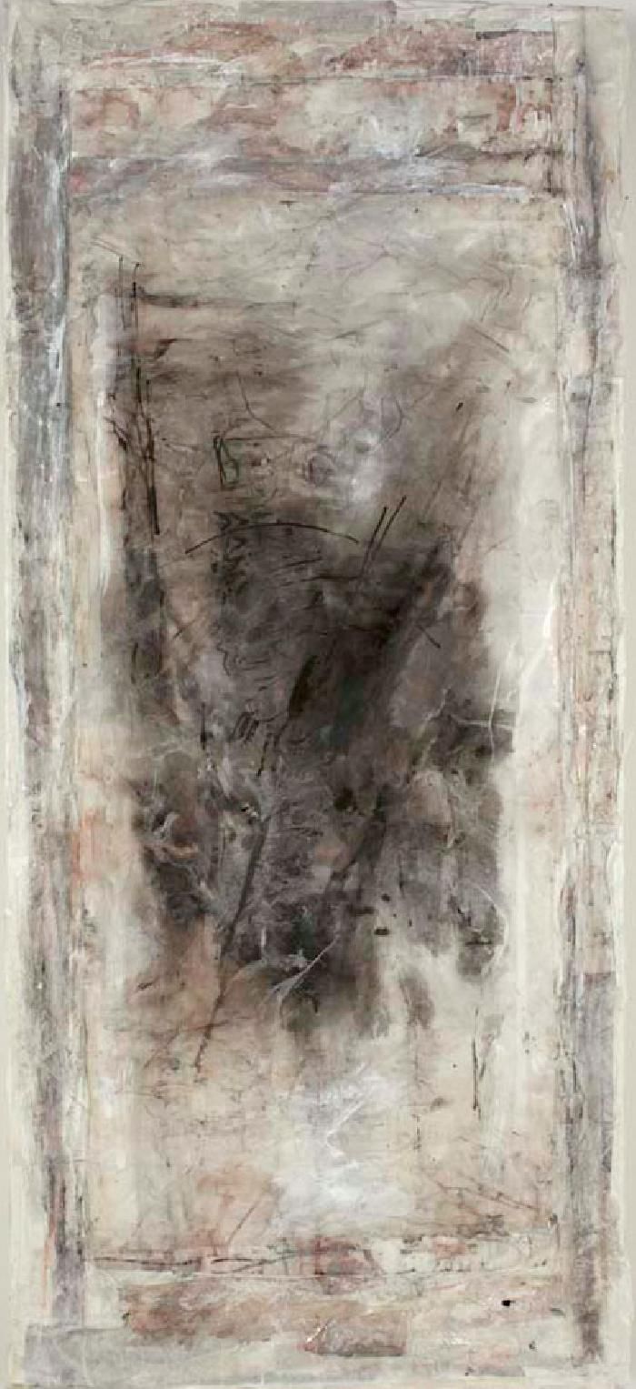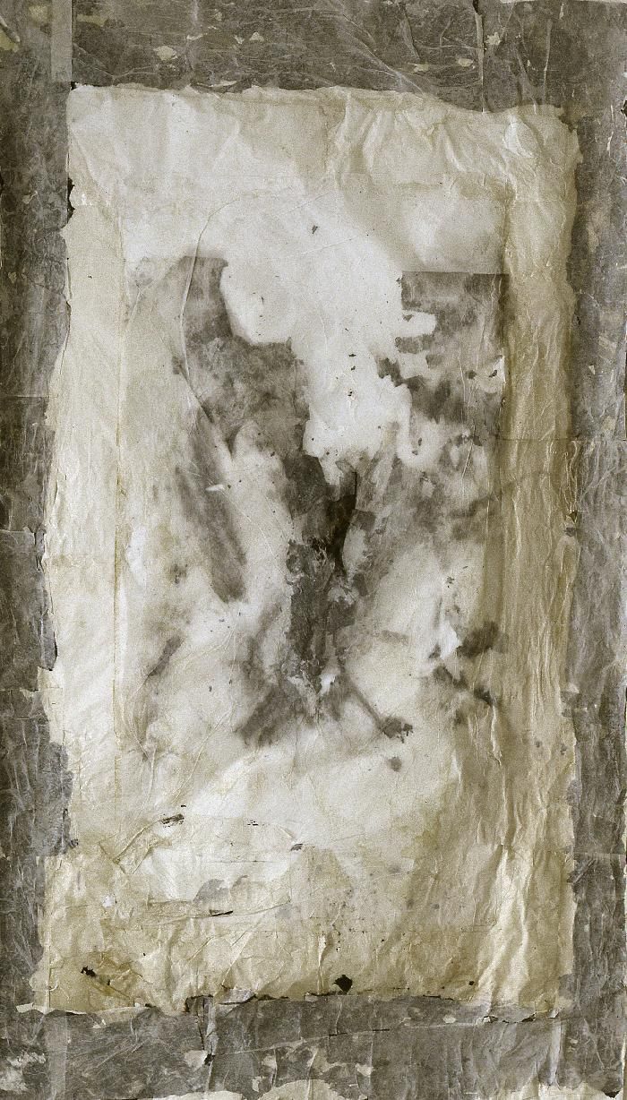 By their fundamental ambiguity, the previous works escaped the label of painting. They affirmed the presence of a body oscillating between structure and disintegration, a labile scaffolding of floating sheet, a fragile epidermis of paper revealing paradoxical entrails.