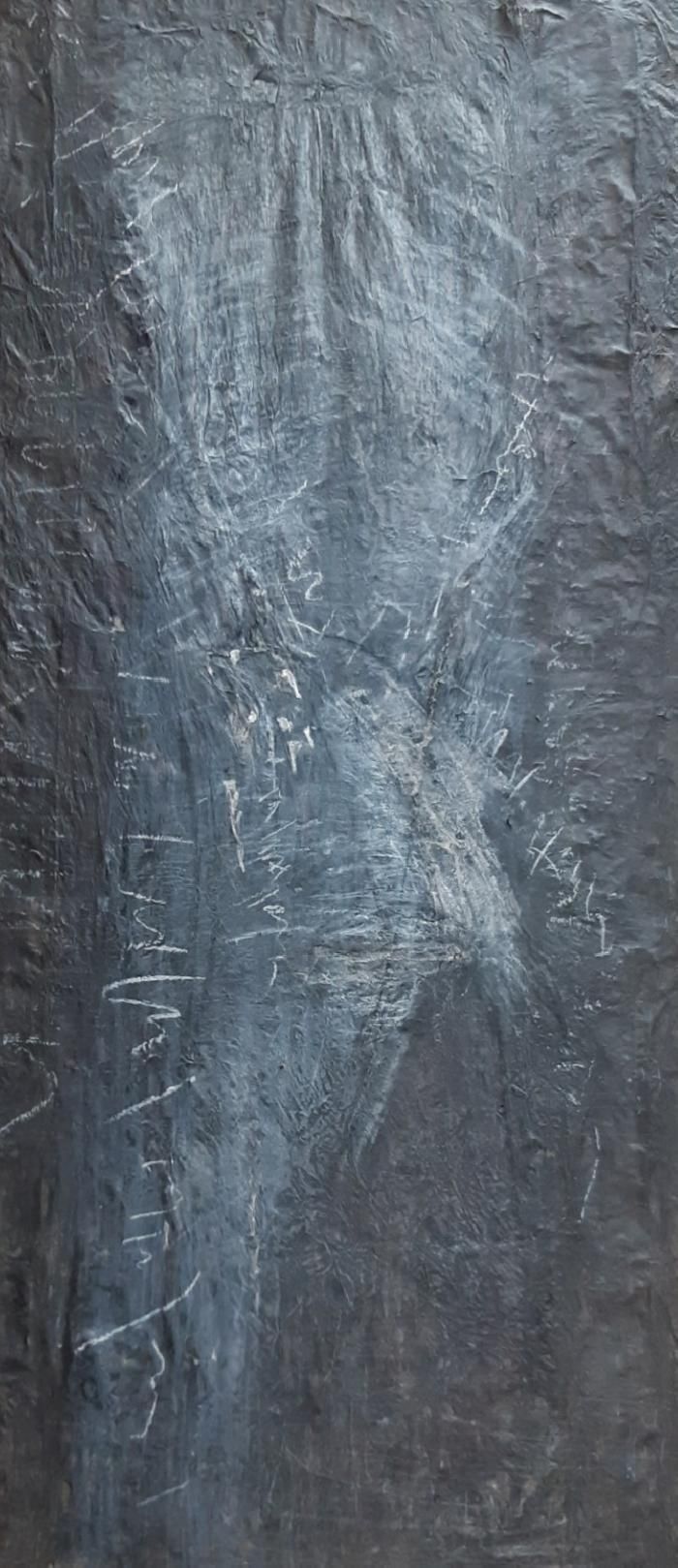 Evoking ancient embalming, burials in foreign lands, inhumations without tombs, bodies without sepulchers, blackened, burned carcasses, the forms respond to each other from work to work, emerging from the sheets, by force of superimposition, or penetrating, turning their backs on the spectator, into a flat and supple world, dark and pale, rough and soft.