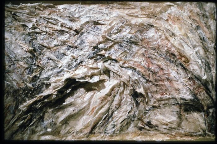 הגוף, שנוצר מחדש על ידי טביעת פסל מאחור, מוטבע בדיו על פיסות בד קרועות ישנות. לאחר מכן, על ידי התמוססותו, גוף זה חורט את צל מה שהיה, את העקבות החולף של מעברו והשמדתו, ובהיסוס על סף המעבר, משאיר את הצופה להחליט על בחירת גורלו.