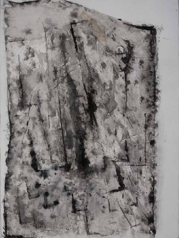 משטיחות הקו או מהעקומה שנפתחה ללא רשות לחזור בתשובה, היא מצליחה, באמצעות קולאז' נייר האורז שלה, על גבי לבן, מצופה או מקומט, בדיאלוג עם הכתב החזק או הקל, העגול או האנכי, להתחבר מחדש למימד השלישי שליווה את תחילת דרכה כפסלת.
