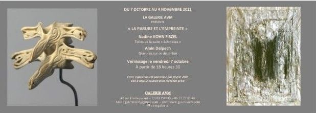 מה-7 באוקטובר עד ה-2 בנובמבר, התערוכה "הקישוט והחותם", בחסות עמותת יוליסה 2001, בגלריה AVM, מציעה להציב זה לצד זה את קנבסים מסדרת "Schmates" מאת נדין קון-פיזל לבין עצמות הצבים החרוטות של אלן דלפש.