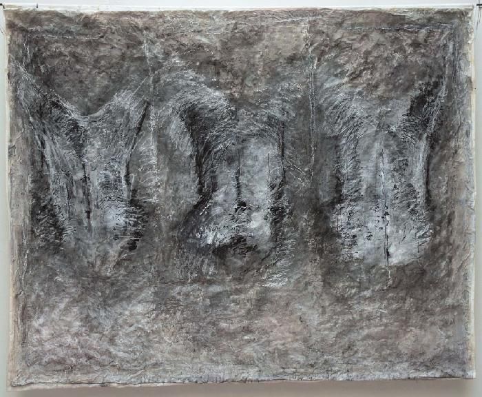 סדין, תחרה, נייר יפני, דיו, חוט, שעווה, בדים.