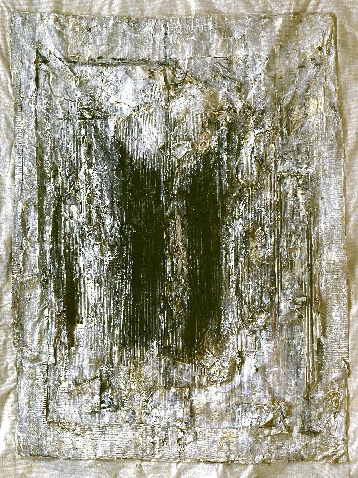 חומרים שונים, ברזל, תחרה, בדים, ניירות, קרטון, פלסטיק מודבק על קנבס, קנבס.