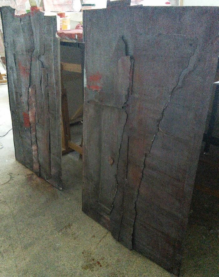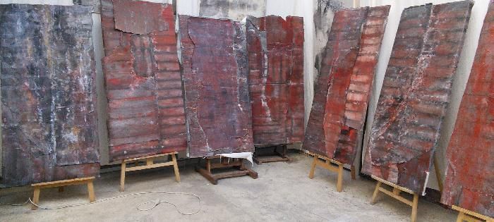 יצירות אלה, שעובדו מחדש מבחינה פיסולית וציורית, המונחות זו לצד זו, יוצרות מעין מתרס.