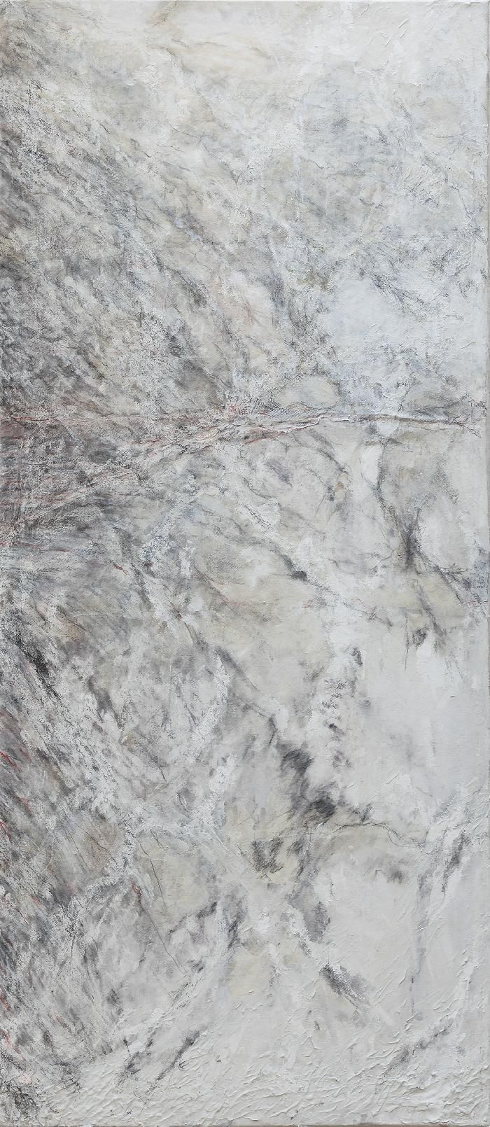 J'utilise alors de grandes feuilles de papier Japon, peu de couleurs, principalement du rouge et beaucoup d' encre. Puis je poursuis cette série sur toile plus lentement.